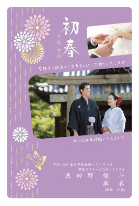 フタバの年賀状印刷サービスなら、スマホやネットからかんたん申し込みで、豊富なデザインの結婚報告の年賀状を印刷することができます。