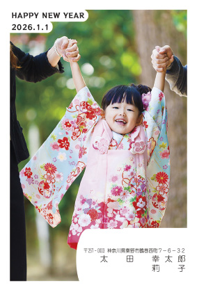 七五三の写真は、何と言っても子どもが主役のため、子どもの笑顔が一番すてきな写真を選んで年賀状にするのがベストです。